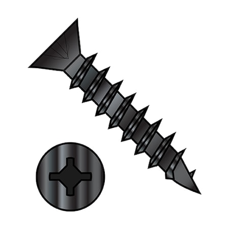 #8, Wood Screw, Black Steel, 4 in L, 1500 PK