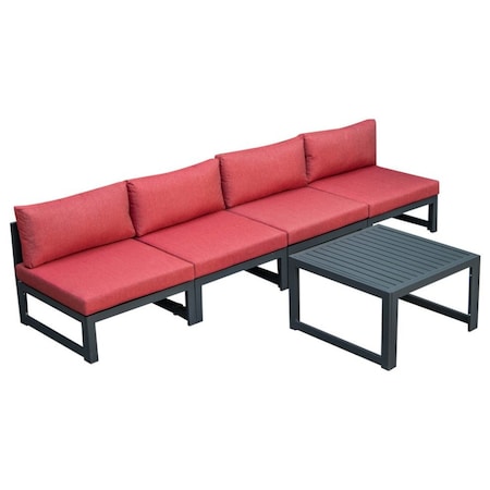 Chelsea 5-Piece Middle Patio Chairs and Coffee Table Set Black Aluminum With Red Cushions