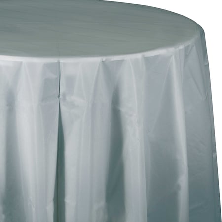 Shimmering Silver Round Plastic Tablecloth, 82", 12PK