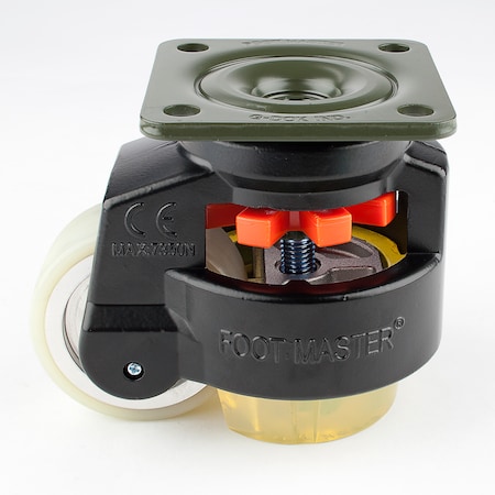 Foot Master Swivel Plate Manual Leveling Caster - 1100 Lb. Cap. - 75mm Dia. Nylon Wheel