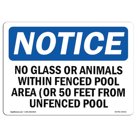 Safety Sign, OSHA Notice, 7" Height, No Glass Or Animals Within Fenced Pool Area Sign, Landscape