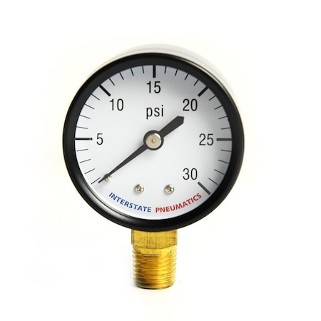 Regular Air Pressure Gauge 30 PSI 2 Inch Diameter 1/4 Inch NPT Bottom Mount