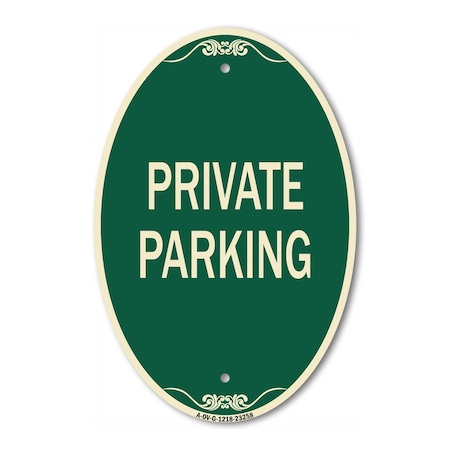 Private Property - No Unauthorized Parking, 12 In X 18 In Architectural Oval, Heavy Gauge Aluminum
