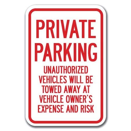 Private Parking Unauthorized Vehicles Towed 12inx18in Aluminums, A-1218 Tow Away Parkings - Priv