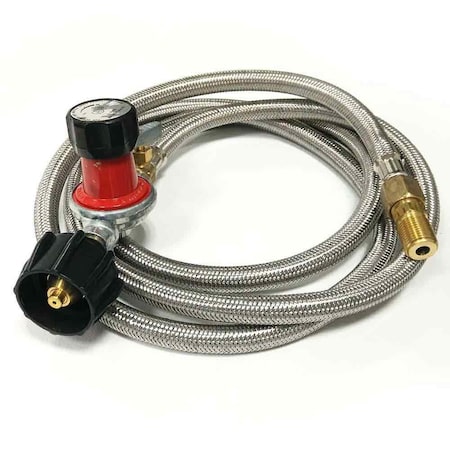 Propane Regulator Assembly with 6 ft Steel Braided Hose and Fitting