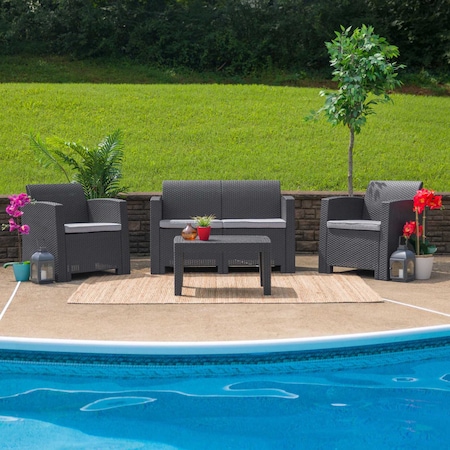4-Piece Rattan Outdoor Patio Set, Open Leg, Black