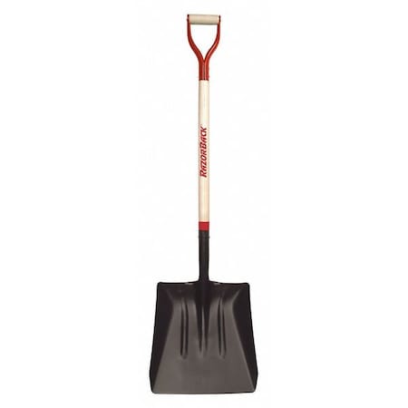 Razor-Back Scoop Shovel, 11 in W Blade, 13-1/2 in L Blade, Aluminum Blade, Hardwood Handle, Long Handle