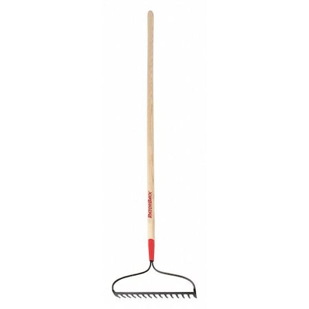 Steel Level Head Rake, 14 Tines, Steel Tine, Steel Head, Wood Handle, 66 in Handle Length