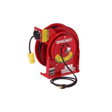 Cord Reel With Hand Lamp, Spring Retracted, NEMA 5-15R, 12 AWG, Red Reel Color, 45 ft Length