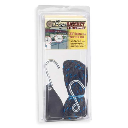 Rope Ratchet, Hook, 15 ft.L, Polypropylene