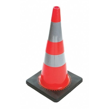 Traffic Cone, Night or High Speed Roadway (45 mph or higher), 7 lb, Reflective, 28 in Height, Orange