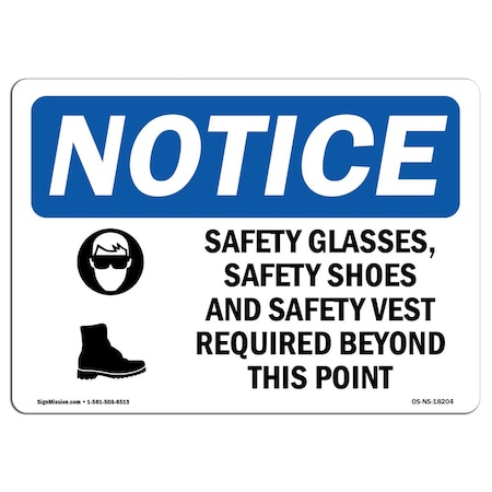 OSHA Sign, Safety Glasses Safety Shoes With Symbol, 24in X 18in Aluminum, 24" W, 18" H, Landscape