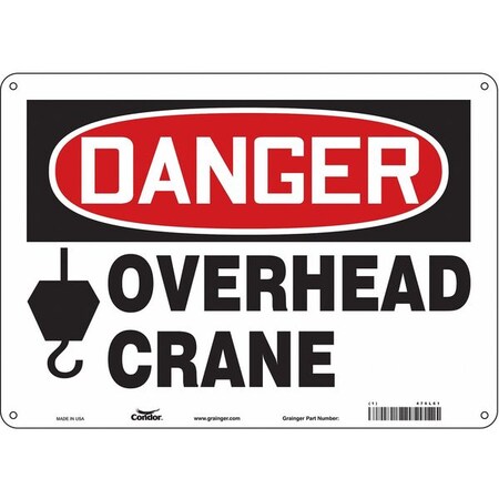 OSHA Danger Sign, Overhead Crane Suspended Load, 14in X 10in Aluminum, 10" W, 14" L, Landscape