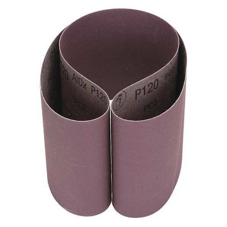 Sanding Belt, 4 in W, 36 in L, Coated, Aluminum Oxide, 120 Grit, Medium, R228 Metalite, Brown
