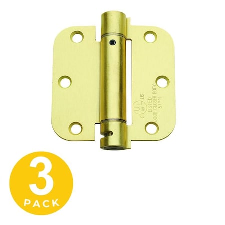 4.5 in. x 4.5 in. Satin Brass Plain Bearing Steel Hinge, 3PK
