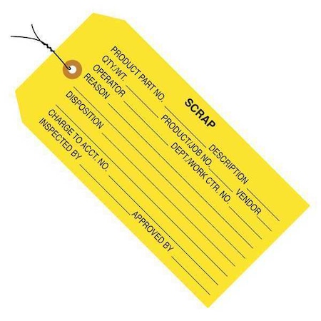 Tag Wired Scrap, 4-3/4"x2-3/8", PK1000, 13 Point Cardstock, 4 3/4" W, Yellow, 1000 PK