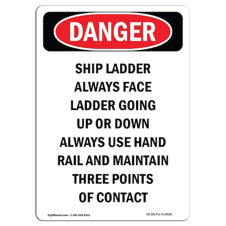 OSHA Danger Sign, Caution Ship Ladder Always Face, 24in X 18in Decal, 18" W, 24" L, Portrait
