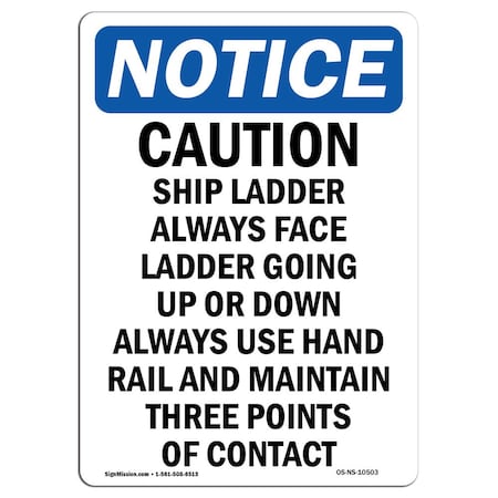 OSHA Notice Sign, 12" H, Rigid Plastic, Caution Ship Ladder Always Face Ladder Going Sign, Landscape