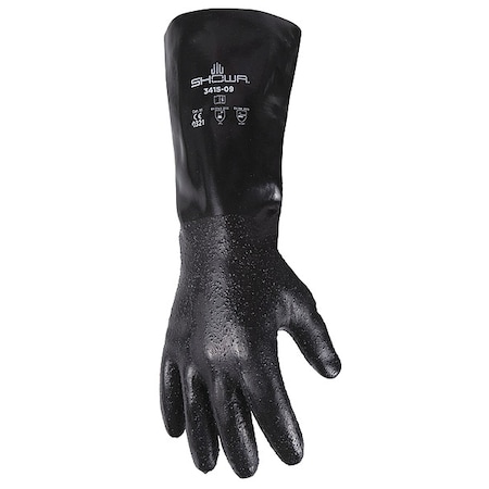 Chemical Resistant Gloves, Neoprene, 60.63 mil Thick, 14 in Length, Grain Texture, Black, Size L