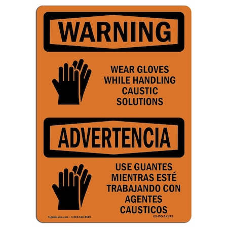 OSHA Sign, Wear Gloves Caustic Solutions Bilingual, 24in X 18in Rigid Plastic, 18" W, 24" H, Spanish