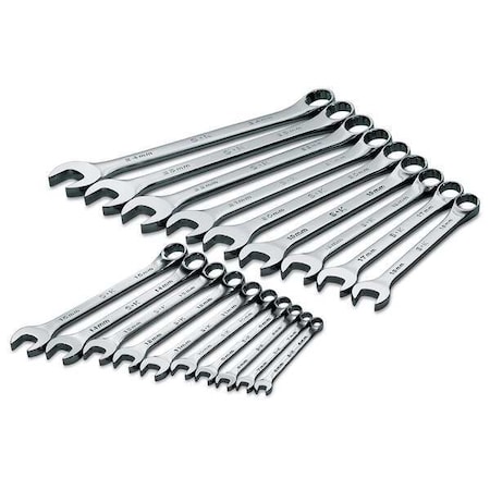 Combo Wrench Set, Chrome, 6-24mm, 19 Pc
