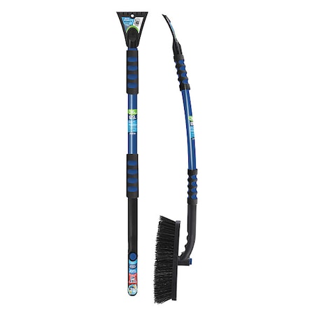 Snow Brush and Scraper, Foam Comfort Grip, 26 in Handle, Pivoting Head, 9 1/4 in Brush Head W