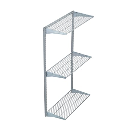 Wall Mount Shelving Unit W/ 3 Steel Wire Shelves & Mounting Hardware, Gray, 33" W x 63" H