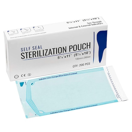 Self-Sealing Sterilization Pouches 3.5in x 10in, w/ Protective Strip & Color Indicator, 50PK