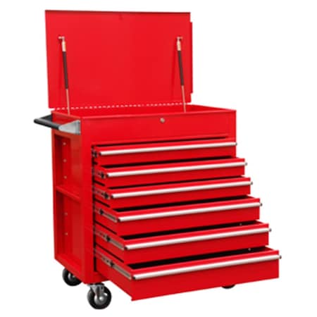 Slide Top Tool Cart, 6 Drawer, Red, 41 in W