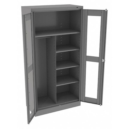 Combo Wardrobe Storage Cabinet, 72 in H, 36 in W, Swing, Keyed, Medium Gray, 5 Shelves, 0 Drawers