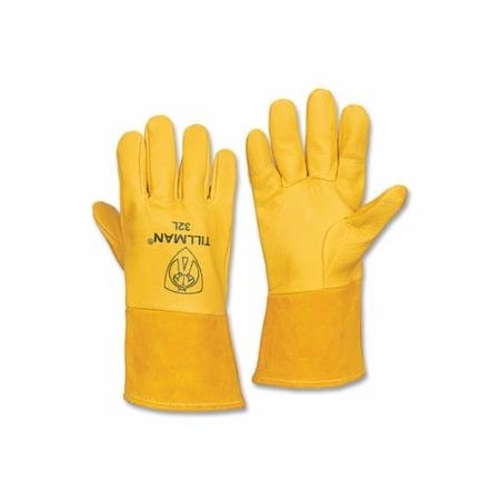 MIG Welding Gloves, 32, Top Gr Pigskin Palm/BOH/Split CH Cuff, Lg, Tan, 4 in L Straight Cuff, 6PK