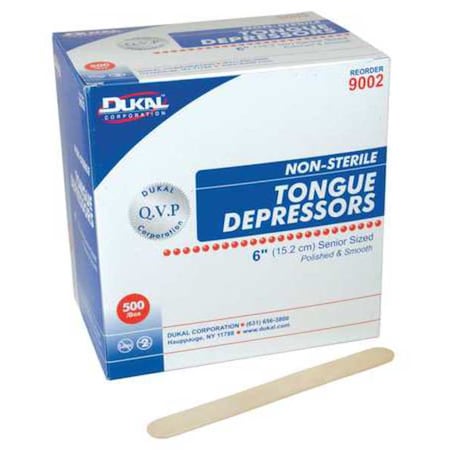 Tongue Depressors, Wood, 6 in L, 5/8 in W