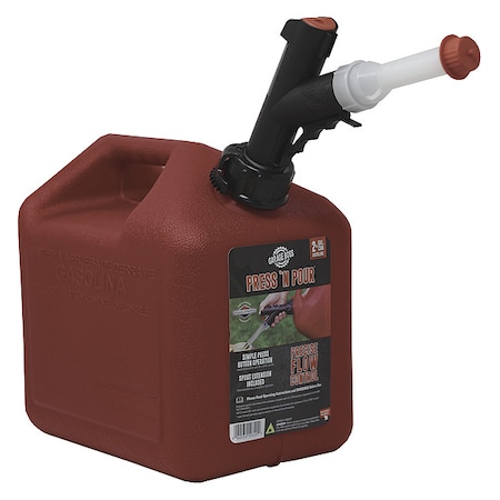 Gas Can, Polyethylene, 2 gal, Gasoline, Red