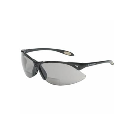 A900 Reader Safety Glasses, Black Wraparound Frame, 1.5 Diopter, Clear Lens, Anti-Scratch Coating