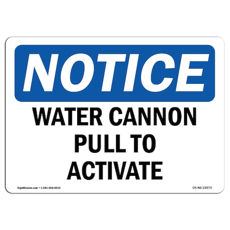 Safety Sign, OSHA Notice, 12" Height, Rigid Plastic, Water Cannon Pull To Activate Sign, Landscape