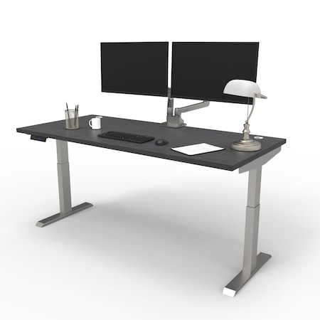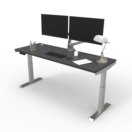 Electric Sit Stand Desk, 46.25 H, 24 W X Laminate wood, metal, Brushed Silver, Burnt Strand