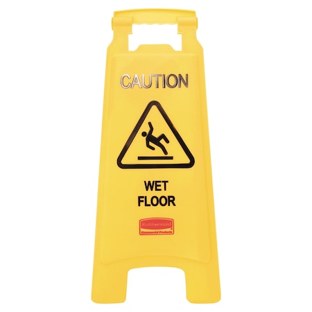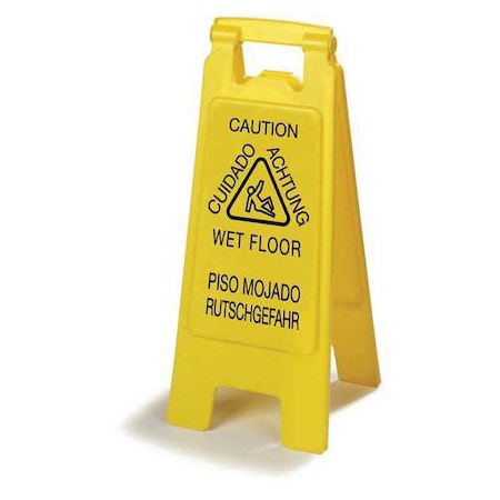 Floor Safety Sign, HDPE, Caution Wet Floor, 25 in H, 11 in W, Not Retroflective, Yellow