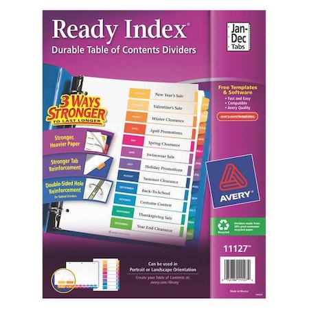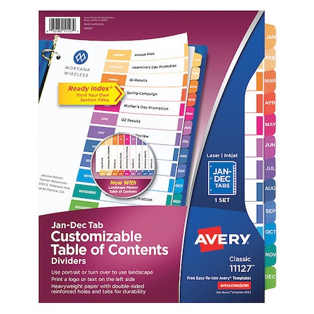 Avery Ready Index T.O.C. Reference Divider, Jan to Dec, 8.5"x11", 12 Tabs, White/Multi