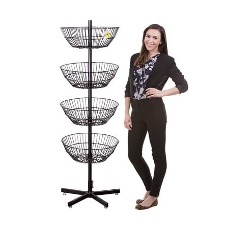 Black 4-Tier Spinner Display With 4 Spinning Wire Baskets