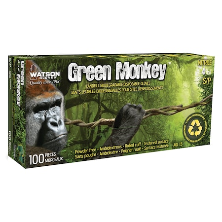 Green Monkey, Disposable Gloves, 4 mil Palm, Biodegradable Nitrile, Powder-Free, XXL, 50 PK, Green