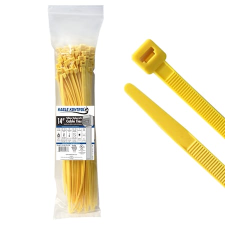 Cable Tie, 14 in L, 4.01 in Max Bundle Dia., Yellow, Nylon 6/6, 50 lb Strength, 100 PK