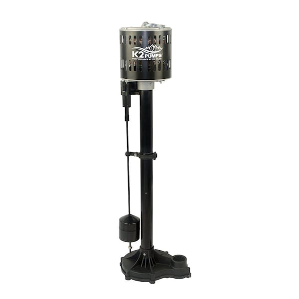 The K2 Pumps 1/3 HP Pedestal sump pump is constructed of corrosion-resistant, reinforced thermoplastic. The pump features a fan-cooled, PSC motor with thermal overload protection and an adjustable vertical float switch. Moves up to 3,550 GPH at 0 ft. of lift, and 2,400 GPH at 10 ft. of lift, with a maximun lift of 20 ft. It is designed fit in basin diameters of 12 in. or larger. Comes with an 8 ft. power cord.