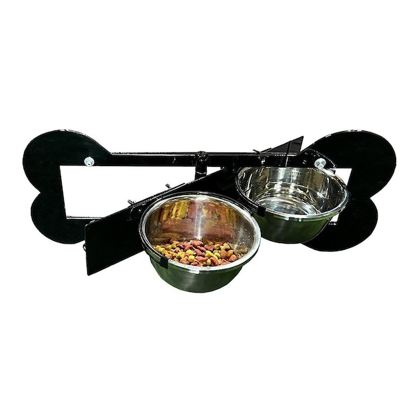 Dog Bone Swivel Bowl Bracket and Metal Bowls