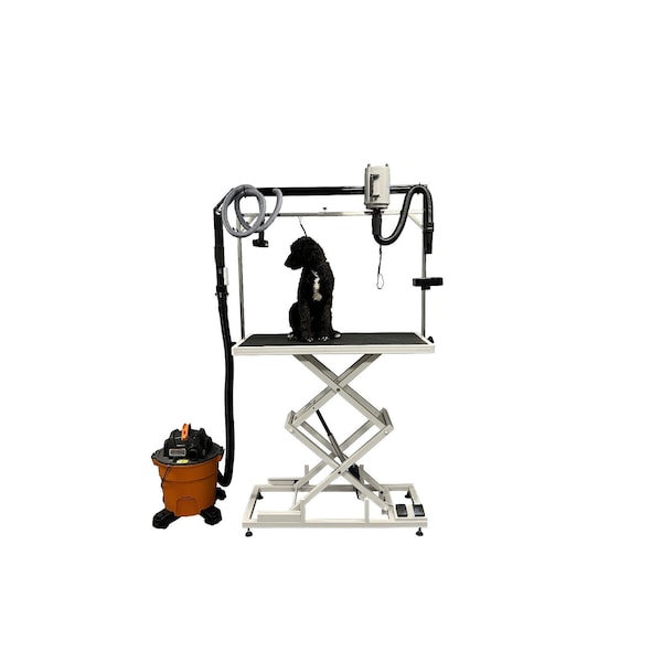 The Ultimate Grooming Systemin from K9 Kennels is the perfect choice for any groomer. It offers all the features you expect and many more that just arent available anywhere else. This system combines safety, convenience, reliability, and value; making it a true favorite among our professional clients. At the foundation of the system is an exceptionally sturdy, high powered grooming table that delivers an unusually wide lifting range and has an unmatched lifting capacity of 300 pounds, yet the table drops to an ultra low 10 inches from the floor, making it easy for any dog to get on or off the table. The top table mat features a slip resistant surface and is easily removed for quick cleaning. The Groom Guard acts as a barrier to prevent dogs from stepping off the table edge. This creates a secure environment for even the most skittish dogs. With the Groom Guard in place, pets stay on the table safe and sound. No longer will dogs inadvertently step or fall off the table.