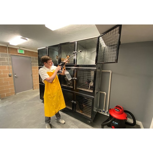 If youre like me, the chore that you dread the most is cleaning kennels. It can be messy, unpleasant and time consuming, for you or your employees. We would like to show you a kennel that changes all of that: The K9 Quick and Clean Kennelin. Quick and Clean Kennels eliminate trays that can spill and be unpleasant to clean.The floors in the Quick and Clean kennels slope to the back, channeling liquid to a drain system which is evacuated by a wet vacuum. Each level has its own valve to prevent back flow and cross contamination.