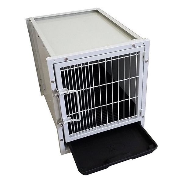 Modular Kennel Cages are the secure, sturdy way to hold pets. Each pet holding kennel is made of secure, zinc plated, 20 gauge steel. Each cage includes a floor grate and a slide out floor tray. Available in small, medium and large sizes. Professional enclosed kennel cages at entry level prices! Each Modular Kennel Cage features a slide out plastic floor tray, a removable floor grate, and a secure latching door.