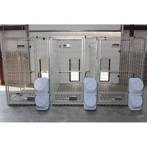 The Vault Dog Food Dispenser keeps dog food fresh, dry, and pest free, plus itfts easy to use. Herefts how it works: The large lid allows you to pour food in without spilling and it holds up to 40 pounds of dry dog food, eliminating the need to store open bags of food. The access door is hinged so that it stays shut until your dog nudges it open, this keeps unwanted rodents, Birds and pests out. The dog food dispenser bolts directly to the kennel so a dog canftt push it away and escape, and the specially angled chute provides a steady food flow on demand without blocking the feeding door