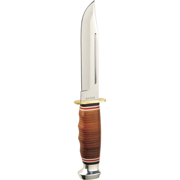 2024 Ka-Bar Marine Hunter-Stacked Leather Handle, Brown Leather Sheath (Discontinued)