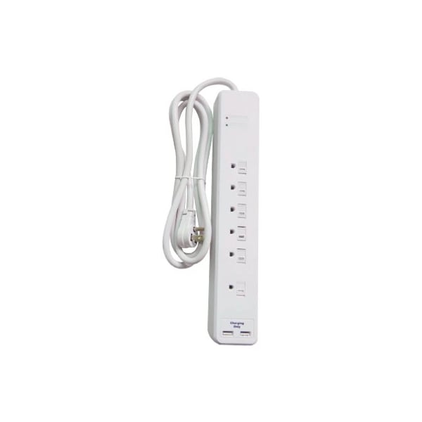 Master Electrician, White, 6 Outlet Surge Strip, 2480 Joule Surge Protector, With 6' 14 Gauge SJT Grounded Power Cord Low Profile Plug, 2 Port USB, 21A Charger, 1 Transformer Outlet, EMIRFI Filtering, Protected Grounded Indicator Light, Certified, ULCUL Listed