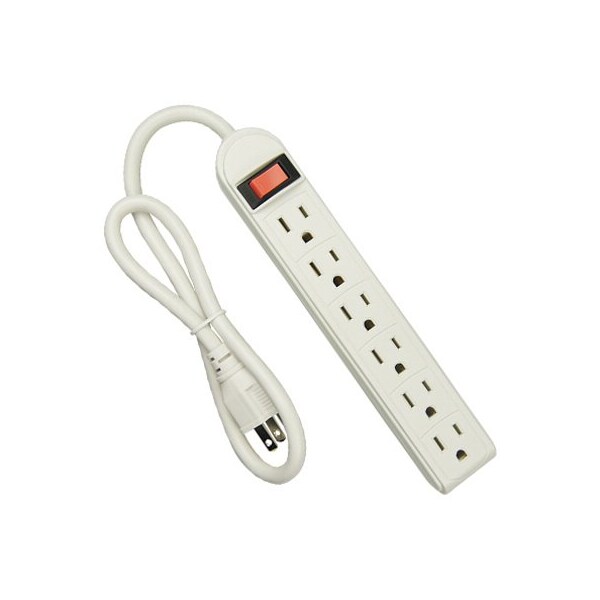 Master Electrician, 2 Pack, White, 6 Outlet Power Strip, OnOff Switch With BuiltIn Circuit Breaker, Straight Plug, SJT 143, 2' Cord, UL Listed